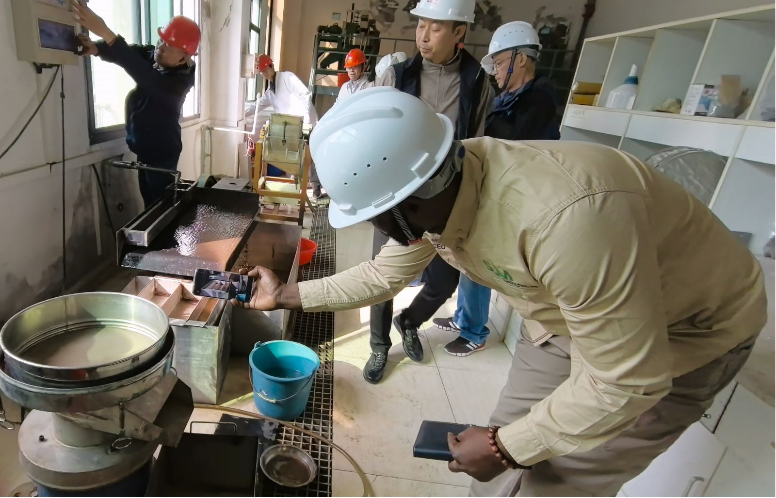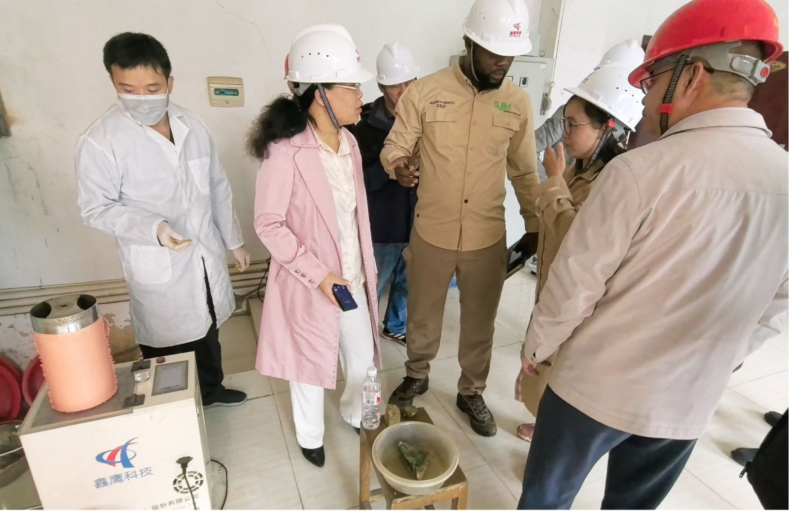 2025年10月31号,来自刚果金的客户到访湖北鑫鹰科技股份有限公司,实地考察铜矿和金矿选矿生产线系统。