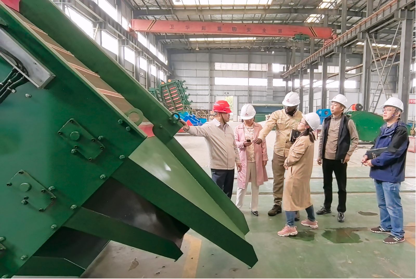 考察期间鑫鹰团队在会议室向客户详细介绍了海外多个实际案例,重点展示了鑫鹰设备先进的设计理念加工工艺、机体强度、可靠性、处理能力和筛分效率、故障率、维护便的捷性多方面的技术优势。随后客户参观了鑫鹰实验室、生产车间,现场了解了,关键工艺环节、设备性能及优势。对我方技术优势给予高度认可。